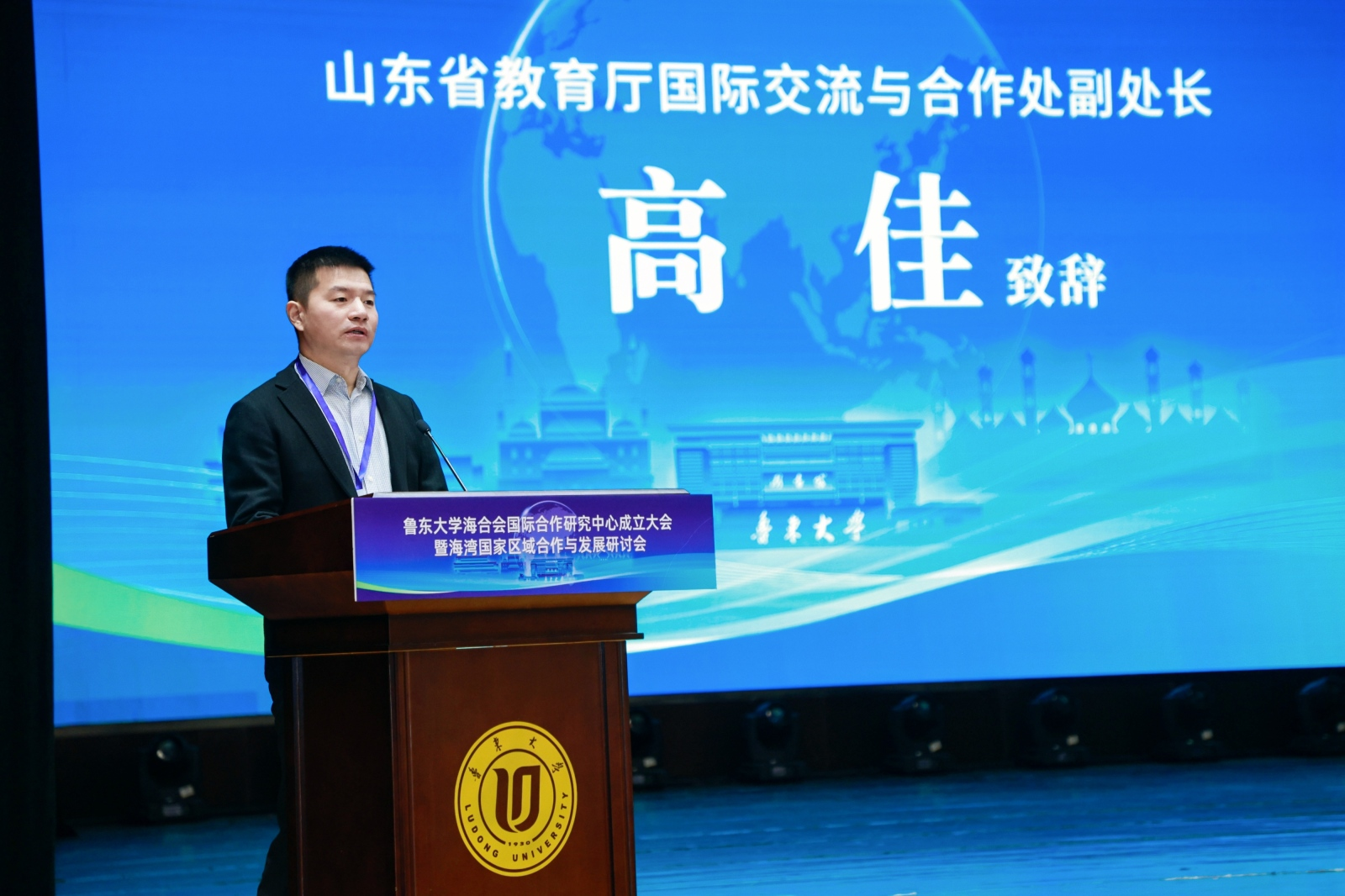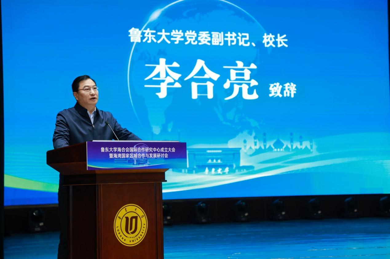 李合亮在致辞中指出,鲁东大学主动融入国家发展战略大局,立足烟台、服务山东,持续推进区域国别学学科建设与高端智库平台打造,着力提升学科竞争力与社会服务能力。他表示,鲁东大学海合会国际合作研究中心的成立,既是学校响应国家战略需求、深化国际交流合作的重要举措,也是学校扎根地方、赋能山东高质量发展的具体实践。他强调,高校作为人才培养与学术研究的主阵地,要加快推进区域国别学学科、人才、智库三大体系协同建设,充分挖掘烟台的区位优势、产业优势,将其转化为区域国别学教学与研究的核心优势,在主动服务国家战略和区域社会高质量发展中培育更多适应中国式现代化建设需求的区域融通型人才。